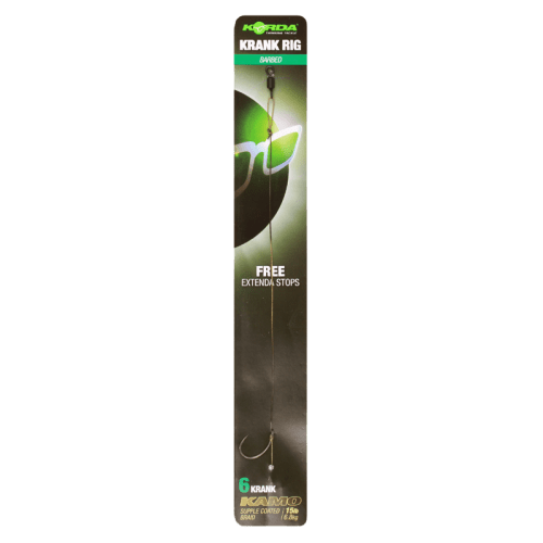 Korda krank rig, ki vključujejo ultra ostre Krank trnke in pletenico z KAMO. V ponudbi so trnki, ki so že zelo preverjeni med ribiči. Vsak blister pa je na voljo z brezplačnimi Extenda stoperji.