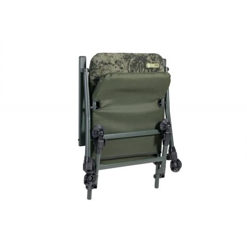 Kompakten a izjemno stabilen in robusten stol s štirimi teleskopskimi nogami in čvrstimi nasloni za roki. Minimalne transportne dimenzije ga vnaprej določajo za kratke ribolove na težje dostopnih mestih. Vendar nikakor ne zmanjšajo njegove skupne trdnosti ali nosilnosti! Zahvaljujoč posebej oblikovanemu okvirju sedeža ta stol ponuja nepričakovano udobno sedenje. Samo raztegljive teleskopske močne noge so opremljene z podložkom proti ugrezanja v blato.