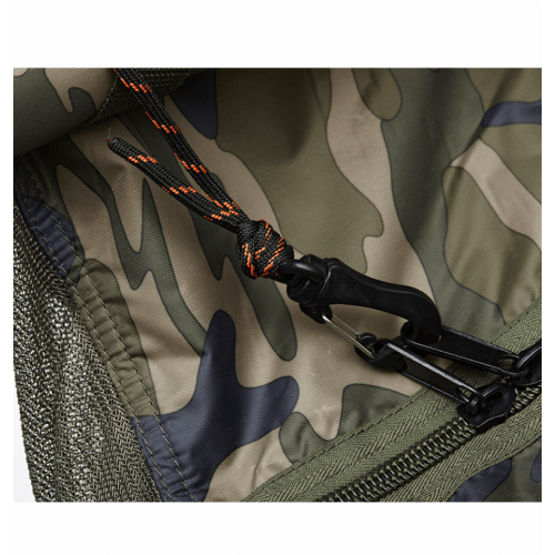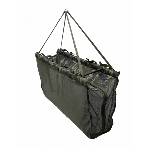 Zaščita šivov deluje tako, da odstrani območja, kjer bi šivi in spoji najverjetneje prišli v stik z našim ulovom. Z obravnavo teh potencialno nevarnih območij vam zdaj lahko ponudimo najboljšo ponudbo izdelkov Carp Care in rib prijaznih izdelkov, ki so bile na voljo do sedaj! Mehka in trpežna mreža v kombinaciji z 2 raztegljivima oporama za naramnice ločuje glavni okvir narazen, kar zagotavlja vedno optimalno izmenjavo vode in zadosten nivo kisika. Zapletene dvosmerne antikorozivne HD zadrge je mogoče preprosto pritrditi skupaj s priloženo vrvico za privez z EVA plovcem in varno palico. Gosta trdna tkanina kapuce pomaga pri zadušitvi svetlobe in zmanjšanju prodora toplote, kar pomaga ohranjati vaš ulov, hladen in sproščen, hkrati pa pomaga pri okrevanju brez povečanega stresa. Štirje kompleti nosilnih ročajev na različnih razdaljah vam nudijo dodatne možnosti varnosti, kar omogoča veliko boljši oprijem in omogoča varnejši prehod v vodo in iz nje. Dva velika tehtalna trakova z jeklenimi obroči na sredini omogočata enostavno in enostavno tehtanje.