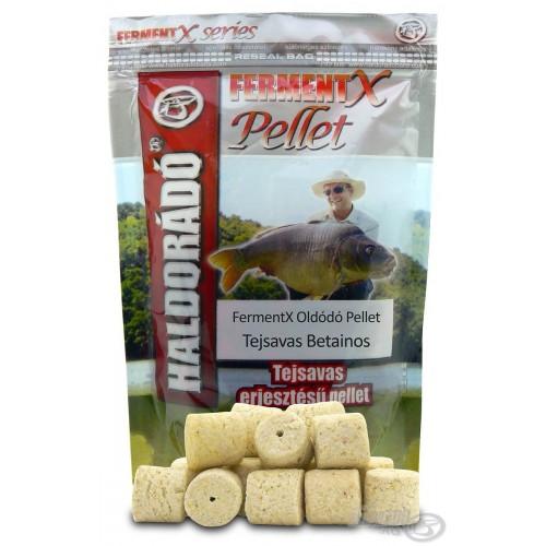 Krmila in semena FermentX počasi, a zanesljivo prepričujejo tudi dvomljive ribiče, zato nedvomno veljajo za najučinkovitejše vabe za tople dni. Med njihovo uporabo so bila najučinkovitejša vaba koruzna zrna, izbrana iz krmila (ali fermentirana semena, ki jih je mogoče kupiti posebej). Vendar smo iz te uspeli izdelati bolj učinkovito vabo, ki je najboljša med fermentiranimi mešanicami. Ime nove družine vab: FermentX Soluble Pellets. Uspelo nam je zgostiti jedro FermentX v eno samo granulo! Vaba je privlačna bomba okusa, ki nenehno spreminja svojo obliko in pošilja signal ribam, naj jo pojedo! Odvisno od temperature vode se raztopi v 40-80 minutah, težko pa si je predstavljati, da bo do takrat ostal nedotaknjen (če so v okolici ribe). Vse vabe so navrtane, zato je tudi vaba izjemno enostavna, saj jo enostavno nataknete na las ali silikonsko gumo za vabo. Nudimo vabe v peletih za vsa FermentX krmila. Trenutno se prodaja v 6 različnih okusih: Lactic Pineapple, Lactic Betainos, Lactic Great Carp, Lactic Great Amur, Lactic Honey Pálinka in Lactic FX 1.