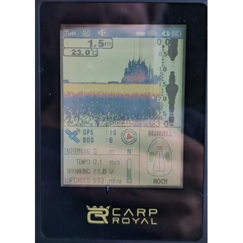 The echosounder runs parallel while controlling the boat on the display. The fish sizes are displayed here in small, medium and large, ptionally with fish symbols or with fish sickles. This professional boat echo sounder in color displays depths of up to 80m. Weed, soft or hard water bottom are displayed, to choose the perfect fishing spot.