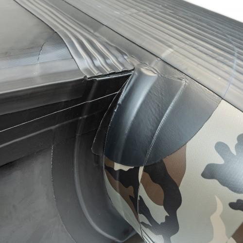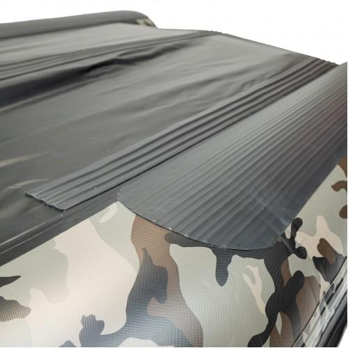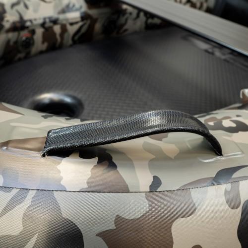 Razred višje od serije X-WIDE je serija X-WIDE CAMO! Debelina materiala sten je 1.0mm v prekrasni CAMO barvi. Širok čoln za povečano stabilnost in veliko notranjega prostora. S širino notranjosti z kar 86cm je to eden izmed najobsežnejših čolnov na trgu. S temi značilnostmi je ta čoln primerljiv s standardno velikih dimenzij čolna na trgu. Čoln je opremljen z visoko kvaliteto končnih materialov in dodatkov, kot so: