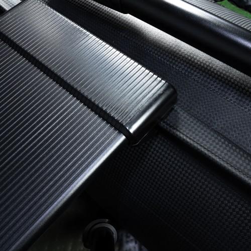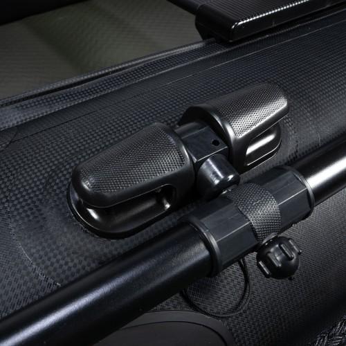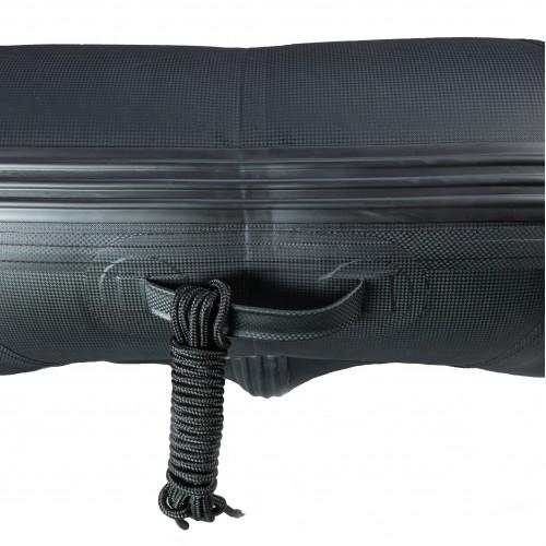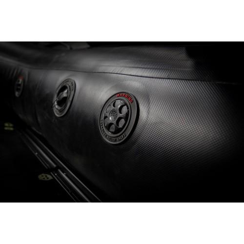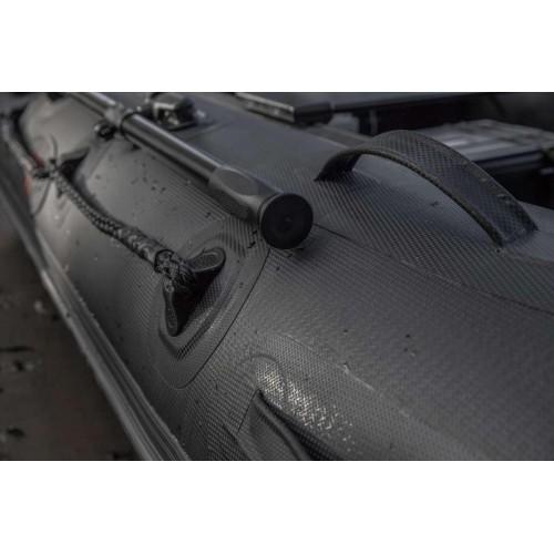 Najboljši med najboljšimi! Z kar 1,2mm debeline sten Black Carbon. Zelo trden in močan material, ki kljubuje še tako zahtevnim razmeram! Širok čoln za povečano stabilnost in veliko notranjega prostora. S širino notranjosti z kar 85cm je to eden izmed najobsežnejših čolnov na trgu. S temi značilnostmi je ta čoln primerljiv s standardno velikih dimenzij čolna na trgu. Čoln je opremljen z visoko kvaliteto končnih materialov in dodatkov, kot so: