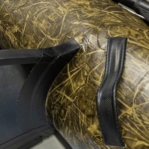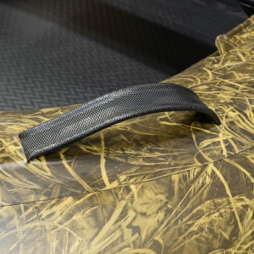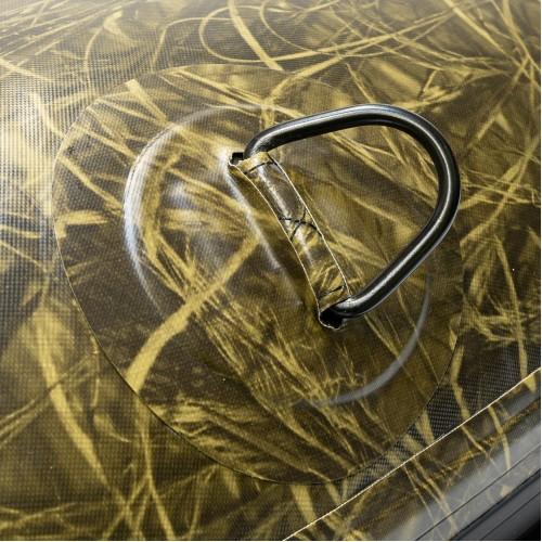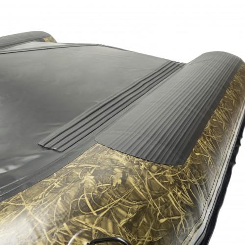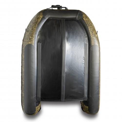 Razred višje od serije X-WIDE je serija X-WIDE BUSH CAMO! Debelina materiala sten je 1.0mm v prekrasni BUSH CAMO barvi. Širok čoln za povečano stabilnost in veliko notranjega prostora. S širino notranjosti z kar 86cm je to eden izmed najobsežnejših čolnov na trgu. S temi značilnostmi je ta čoln primerljiv s standardno velikih dimenzij čolna na trgu. Čoln je opremljen z visoko kvaliteto končnih materialov in dodatkov, kot so: