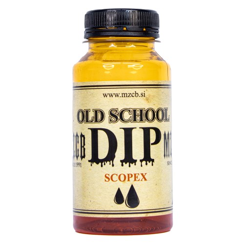 MZCB old school dip - nostalgija. Ustvarjen iz prvovrstnih sestavin, ki vsebujejo veliko aminokislin in zaokrožen z betainom katerega ribe enostavno obožujejo! DIP uporabljamo predvsem za dipanje hook boilijev, partikla, peletov in ostalih hook baits-ev. Zaradi intenzivnega klasičnega vonja izstopa tudi v "težkih" muljastih vodah. Koristimo ga lahko skozi celo leto!