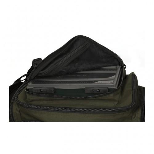 Fox R-Series Rucksack Nova R-serija torb je narejena iz robustnega in vodo nepropustnega materiala. Volumen nahrbnika je 35 litrov kateri je idealen za mobilne ribiče. Velik žep na sprednji strani je idealen za F-box škatlo, na straneh najdemo dodatne žepe. Ročaji in naramnice so udobno podložene z EVA materialom, pravtako so nastavljive po dolžini. Pasi na sprednji strani se ponujajo za pritrditev manjšega stola ali unhooking mate.