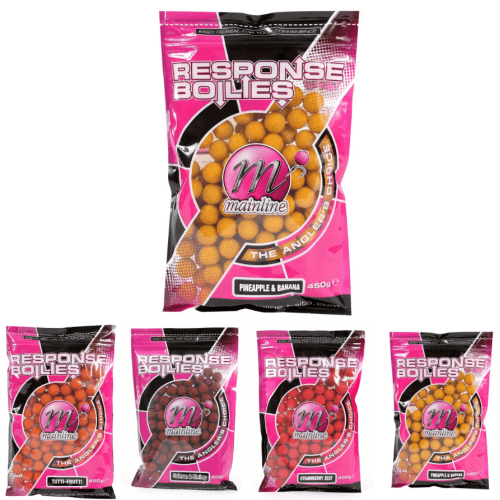 Mainline Response Boilies ustvarjeni za ribiče, ki nimajo časa za rolanje lastnih bojlijev. Z uporabo najkakovostnejših sestavin za prehrano ljudi je Mainline oblikoval novo generacijo že pripravljenih vab, ki začnejo delovati takoj, ko padejo v vodo. Osnova z visoko stopnjo spuščanja signala omogoča, da arome in atraktorji hitro uhajajo iz vabe zaradi njene same teksture. Postopek izločanja arome traja od 12 do 18 ur, odvisno od temperature vode. Vabe so popolnoma okrogle, brez ostankov, kar omogoča natančno hranjenje z pripomočki za hranjenje.