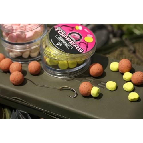 Izredna plovnost, odlične arome, izredno močne atraktivne barve, kakor tudi vrhunski dodatki, katere privlačijo še tako previdne krape, so glavne značilnosti teh vab toppers. Izredno primerni kot samostojna vaba ali za balansiranje lovnih boilijev. Na voljo v več okusih dimenzijah in barvah! Komplet treh barv je vštet v ceno.