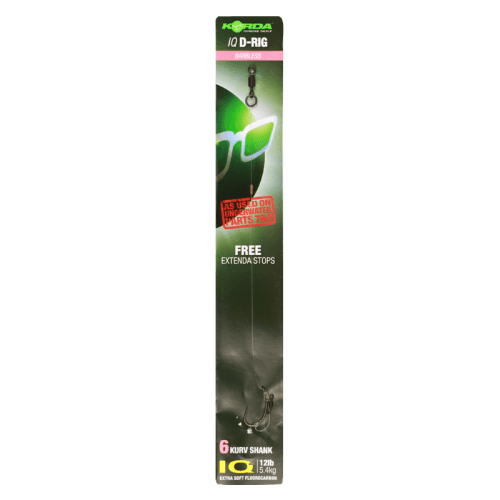 Naveze IQ D-rig pravzaprav ni treba veliko predstavljati, saj je že vrsto let priljubljena pri Dannyju Fairbrassu in Aliju Hamidiju in se je neštetokrat pojavila na Thinking Tackle, Masterclass in Monster Carp. Če se sami trudite navezati popolne D-naprave, so te že pripravljene in je popolna rešitev, saj so narejene točno tako, kot bi jih izdelal Danny ali Ali. Imajo trnek Kurv Shank do IQ2, ki je v vodi skoraj neviden in ima dovolj mehkobe, da lepo sedi na dnu jezera, na drugem koncu pa je Ring Swivel velikosti 8, ki zagotavlja veliko gibanja. Vsak blister je opremljen z brezplačnimi Extenda Stops, tako da se lahko uporablja s skoraj vsemi velikostmi vab! Velikost 8 je vezana na 10 lb IQ2; velikost od 6 do 12 lb; velikost od 4 do 15 lb; in velikosti 2 do 20 lb.